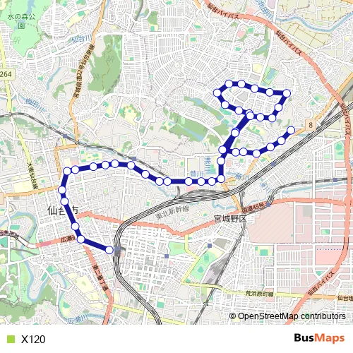See why over 2 million users trust and consider busmaps.com as the best public transport website. busmaps gives you Sendai Buses suggested routes, real-time bus tracker, line route maps in Sendai, and helps to find the closest X120 bus stops near you. No internet available? Download an offline PDF map and bus schedule for the X120 bus to take on your trip.