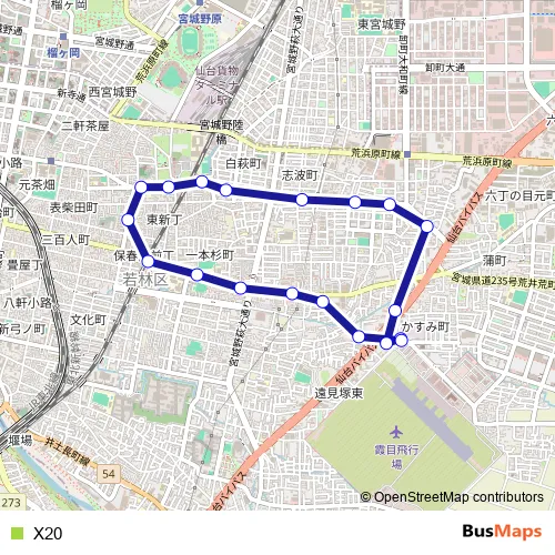 See why over 2 million users trust and consider busmaps.com as the best public transport website. busmaps gives you Sendai Buses suggested routes, real-time bus tracker, line route maps in Sendai, and helps to find the closest X20 bus stops near you. No internet available? Download an offline PDF map and bus schedule for the X20 bus to take on your trip.