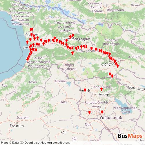 Georgian Railway operates in the following cities: Kharagauli, Tbilisi, Kutaisi, Mtskheta, Lanchkhuti, Armavir, Chiatura, Khobi, Ozurgeti.