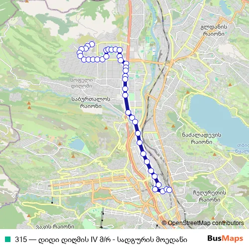 Click here to view the nearest 315 - დიდი დიღმის IV მ/რ - სადგურის მოედანი bus stop.