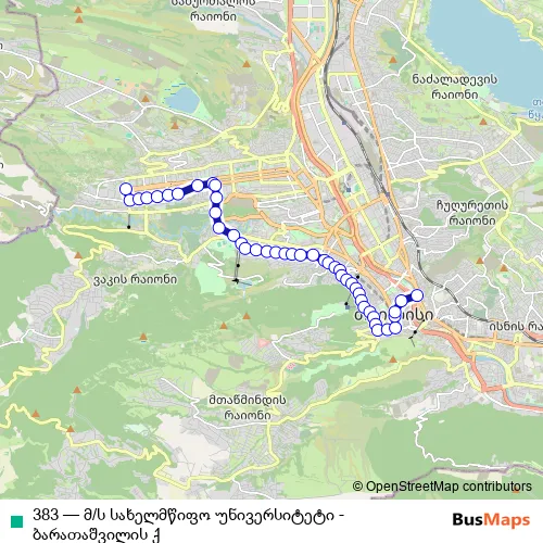 Click here to view the nearest 383 - მ/ს სახელმწიფო უნივერსიტეტი - ბარათაშვილის ქ. bus stop.