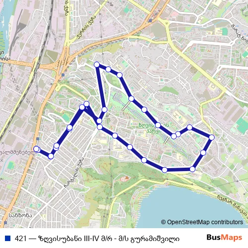 See why over 2 million users trust and consider busmaps.com as the best public transport website. busmaps gives you Tbilisi Buses suggested routes, real-time bus tracker, line route maps in Tbilisi, and helps to find the closest 421 bus stops near you. No internet available? Download an offline PDF map and bus schedule for the 421 bus to take on your trip.