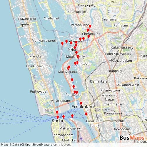 Kochi city boat operates in the following cities: Kanayannur, Mulavukad, Vypin, Elur, Kadamakudi.