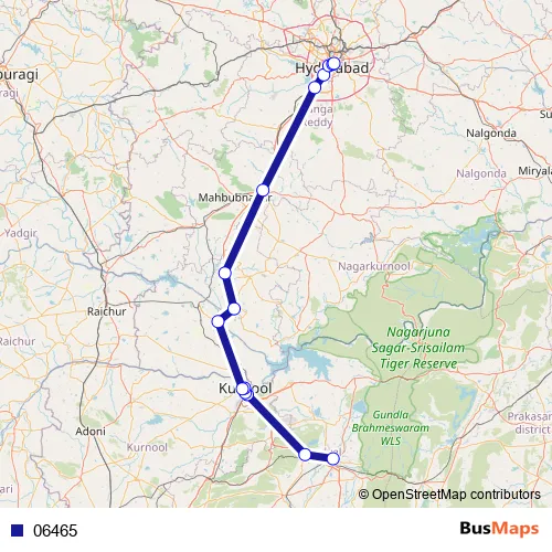 The first stop of the 06465 bus route is Nandyal and the last stop is