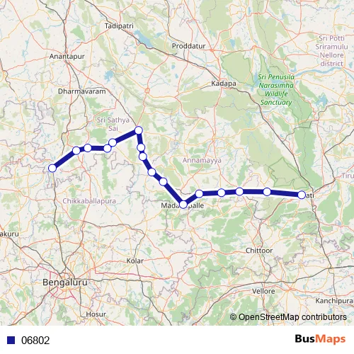The first stop of the 06802 bus route is Tirupathi and the last stop is