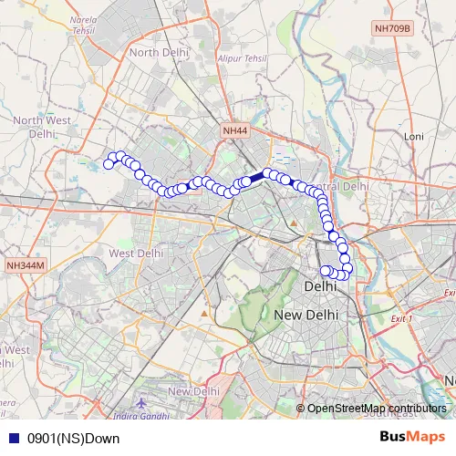 Delhi Transport Corporation 0901(NS)Down bus Route Map