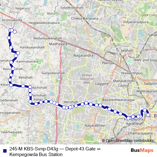 See why over 2 million users trust and consider busmaps.com as the best public transport website. busmaps gives you Bengaluru Buses suggested routes, real-time bus tracker, line route maps in Bengaluru, and helps to find the closest 245-M KBS-Svnp-D43g bus stops near you. No internet available? Download an offline PDF map and bus schedule for the 245-M KBS-Svnp-D43g bus to take on your trip.