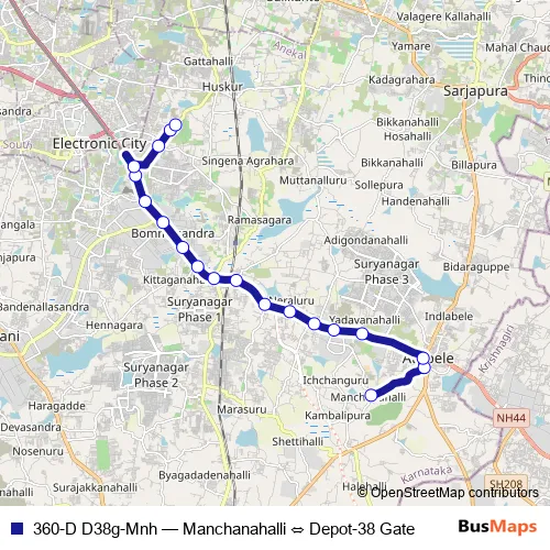 ಘಟಕ-38 ಗೇಟ್ (ಟುವರ್ಡ್ಸ್ ಹುಸ್ಕೂರ್). 360-D D38g-Mnh (Manchanahalli ⇔ Depot-38 Gate) is operational during ಪ್ರತಿದಿನ.