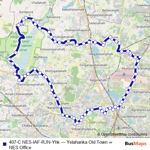 Bmtc 407-C NES-IAF-RJN-Yhk bus Route Map