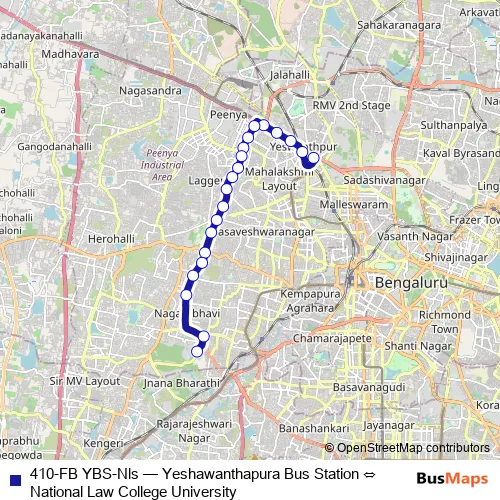 Click here to view the nearest 410-FB YBS-Nls - Yeshawanthapura Bus Station ⇔ National Law College University bus stop.