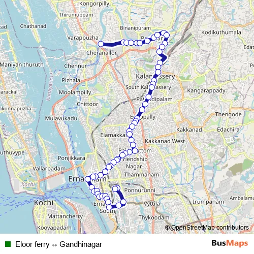 Kochi city bus Eloor ferry ↔ Gandhinagar bus Route Map