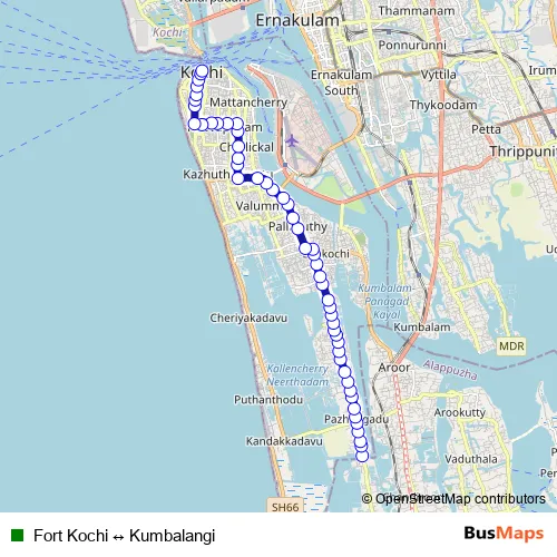 Additional information: Fort Kochi ↔ Kumbalangi has 51 stops and the total trip duration