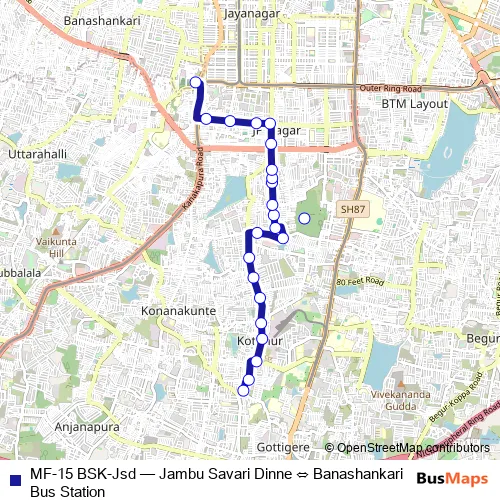 See why over 2 million users trust and consider busmaps.com as the best public transport website. busmaps gives you Bengaluru Buses suggested routes, real-time bus tracker, line route maps in Bengaluru, and helps to find the closest MF-15 BSK-Jsd bus stops near you. No internet available? Download an offline PDF map and bus schedule for the MF-15 BSK-Jsd bus to take on your trip.