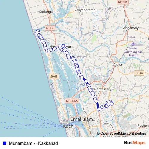 Additional information: Munambam ↔ Kakkanad has 74 stops and the total trip duration