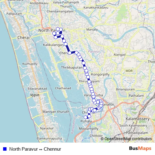 Mofussil Kochi bus North Paravur ↔ Chennur bus Route Map