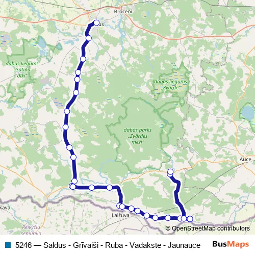 Tirgus iela - Saldus-Ezere - Pūri — Auce — Grīvaiši - Ezere — Vadakste - Jaunauce — Vadakste - Pūri — Auce — Grīvaiši