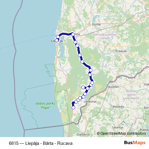 Bus 6815 - Liepāja - Bārta - Rucava: Full Schedule in Rucava