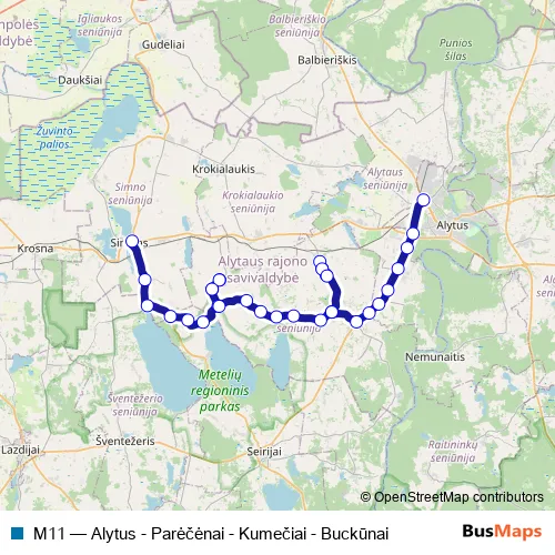 Alytaus As. M11 (Alytus - Parėčėnai - Kumečiai - Buckūnai) is operational during darbo dienomis.