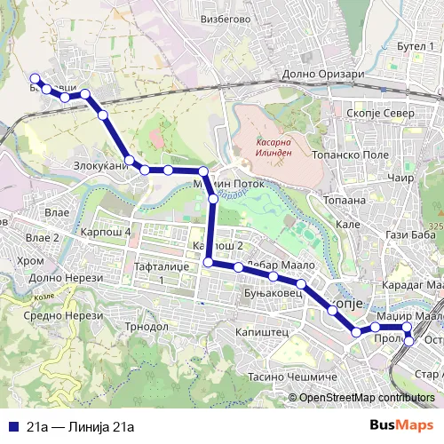 Bus 21a - Линија 21a in Skopje: Stops & Timetable