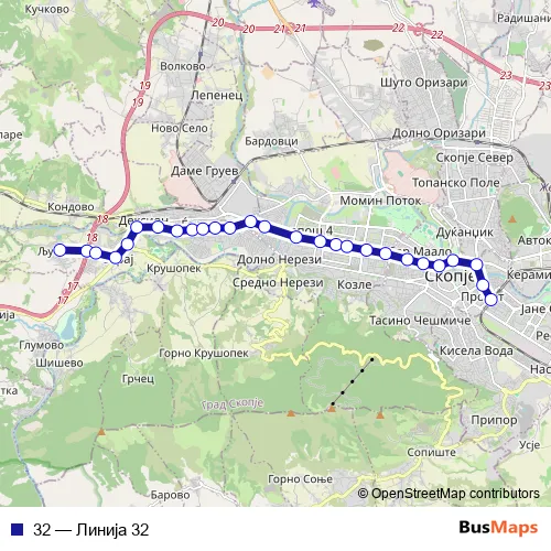 See why over 2 million users trust and consider busmaps.com as the best public transport website. busmaps gives you Skopje Buses suggested routes, real-time bus tracker, line route maps in Skopje, and helps to find the closest 32 bus stops near you. No internet available? Download an offline PDF map and bus schedule for the 32 bus to take on your trip.