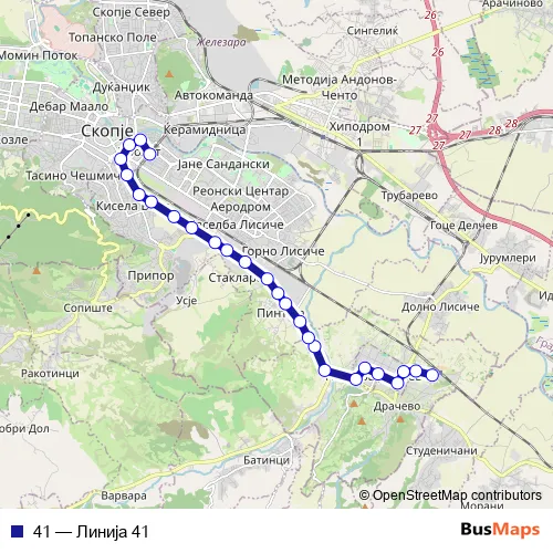 See why over 2 million users trust and consider busmaps.com as the best public transport website. busmaps gives you Skopje Buses suggested routes, real-time bus tracker, line route maps in Skopje, and helps to find the closest 41 bus stops near you. No internet available? Download an offline PDF map and bus schedule for the 41 bus to take on your trip.