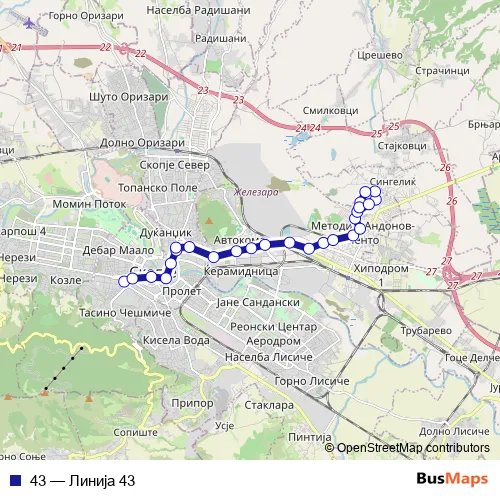 See why over 2 million users trust and consider busmaps.com as the best public transport website. busmaps gives you Skopje Buses suggested routes, real-time bus tracker, line route maps in Skopje, and helps to find the closest 43 bus stops near you. No internet available? Download an offline PDF map and bus schedule for the 43 bus to take on your trip.