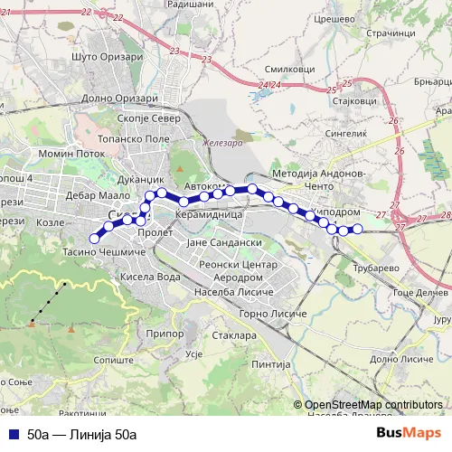 See why over 2 million users trust and consider busmaps.com as the best public transport website. busmaps gives you Skopje Buses suggested routes, real-time bus tracker, line route maps in Skopje, and helps to find the closest 50а bus stops near you. No internet available? Download an offline PDF map and bus schedule for the 50а bus to take on your trip.