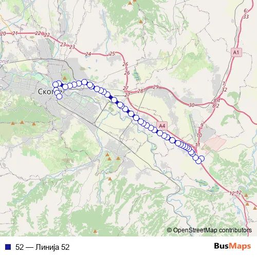 See why over 2 million users trust and consider busmaps.com as the best public transport website. busmaps gives you Skopje Buses suggested routes, real-time bus tracker, line route maps in Skopje, and helps to find the closest 52 bus stops near you. No internet available? Download an offline PDF map and bus schedule for the 52 bus to take on your trip.
