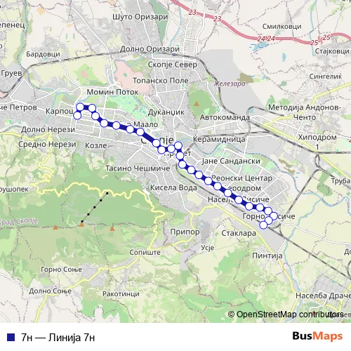 See why over 2 million users trust and consider busmaps.com as the best public transport website. busmaps gives you Skopje Buses suggested routes, real-time bus tracker, line route maps in Skopje, and helps to find the closest 7н bus stops near you. No internet available? Download an offline PDF map and bus schedule for the 7н bus to take on your trip.