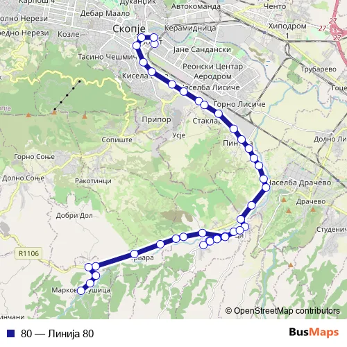 See why over 2 million users trust and consider busmaps.com as the best public transport website. busmaps gives you Skopje Buses suggested routes, real-time bus tracker, line route maps in Skopje, and helps to find the closest 80 bus stops near you. No internet available? Download an offline PDF map and bus schedule for the 80 bus to take on your trip.