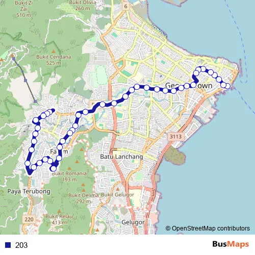 See why over 2 million users trust and consider busmaps.com as the best public transport website. busmaps gives you George Town Buses suggested routes, real-time bus tracker, line route maps in George Town, and helps to find the closest 203 bus stops near you. No internet available? Download an offline PDF map and bus schedule for the 203 bus to take on your trip.