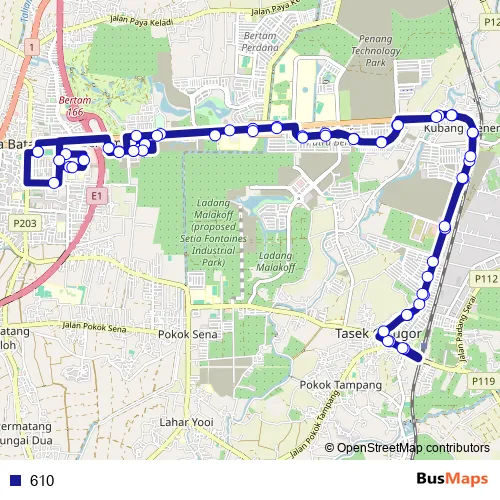 Services on the 610 bus stop at 20:10 on Isnin, Selasa, Rabu, Khamis, Jumaat.