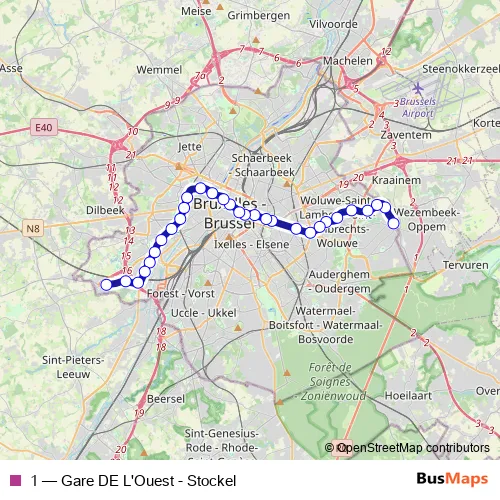 See why over 2 million users trust and consider busmaps.com as the best public transport website. busmaps gives you Brussels Metro Lines suggested routes, real-time bus tracker, line route maps in Brussels, and helps to find the closest 1 metro stops near you. No internet available? Download an offline PDF map and bus schedule for the 1 metro to take on your trip.