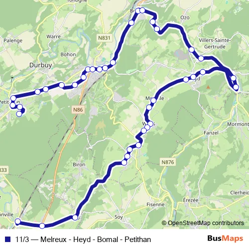Bus 11/3 - Melreux - Heyd - Bomal - Petithan in Weris: Stops & Timetable