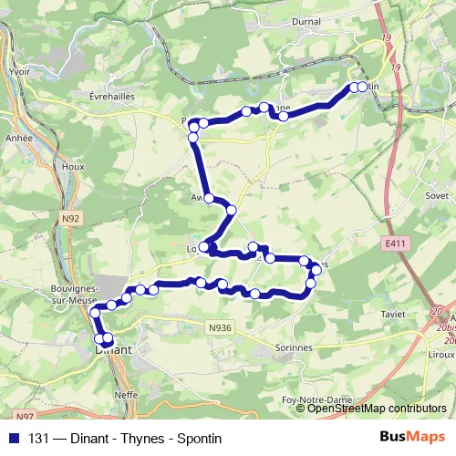 Click here to view the nearest 131 - Dinant - Thynes - Spontin bus stop.