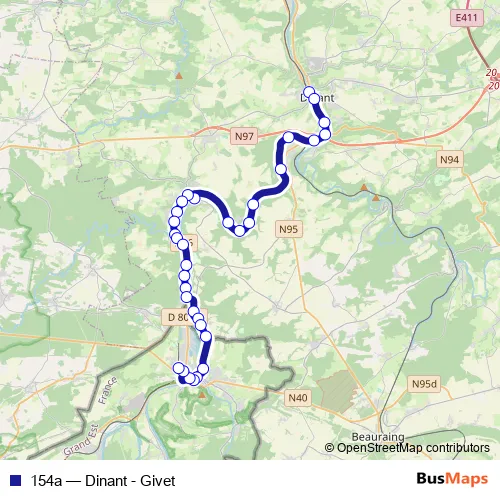 Place de la Gare - Place Méhul - Quai des Remparts - Place de la République - Rue Notre-Dame - Rue de Tivoli - Rue du Faubourg - Rue du Pont - Rue de France - Rue de Dinant - Chaussée de Givet - Avenue Guy Stinglhamber - Rue Marcel Lespagne - Rue de Meuse - Rue de Givet - Avenue des Combattants - Square de la Brigade Piron