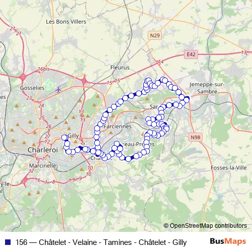 Click here to view the nearest 156 - Châtelet - Velaine - Tamines - Châtelet - Gilly bus stop.