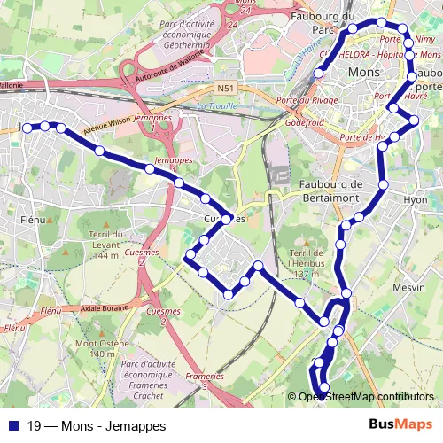See why over 2 million users trust and consider busmaps.com as the best public transport website. busmaps gives you Cuesmes Buses suggested routes, real-time bus tracker, line route maps in Cuesmes, and helps to find the closest 19 bus stops near you. No internet available? Download an offline PDF map and bus schedule for the 19 bus to take on your trip.