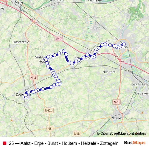 Click here to view the nearest 25 - Aalst - Erpe - Burst - Houtem - Herzele - Zottegem bus stop.