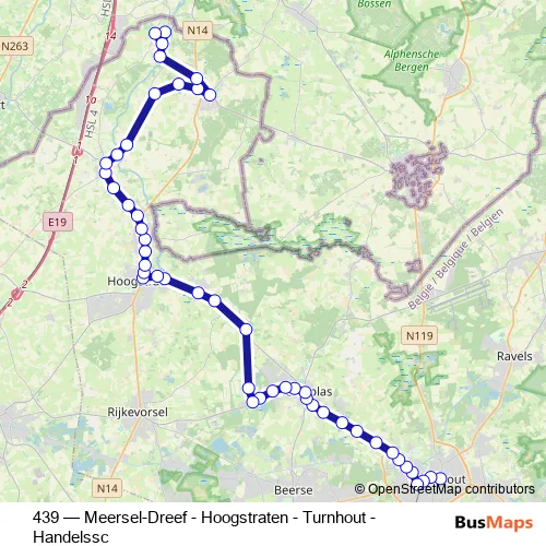Click here to view the nearest 439 - Meersel-Dreef - Hoogstraten - Turnhout - Handelssc bus stop.