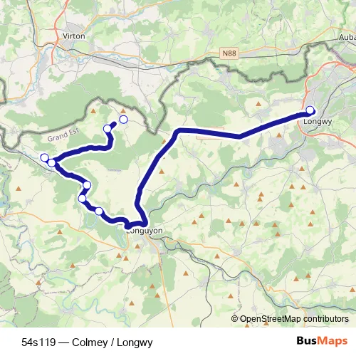 See why over 2 million users trust and consider busmaps.com as the best public transport website. busmaps gives you Virton Buses suggested routes, real-time bus tracker, line route maps in Virton, and helps to find the closest 54s119 bus stops near you. No internet available? Download an offline PDF map and bus schedule for the 54s119 bus to take on your trip.