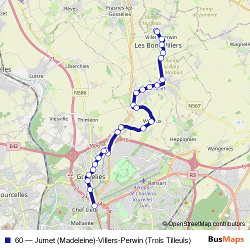 Bus 60 - Jumet (Madeleine)-Villers-Perwin (Trois Tilleuls): Full Schedule in Villers-Perwin