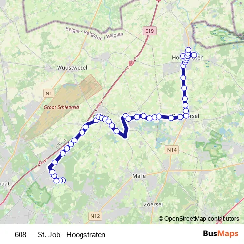 Click here to view the nearest 608 - St. Job - Hoogstraten bus stop.