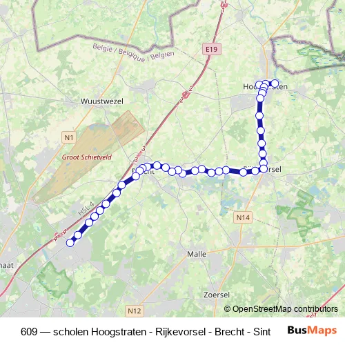 Bus 609 - scholen Hoogstraten - Rijkevorsel - Brecht - Sint: Full Schedule in Hoogstraten