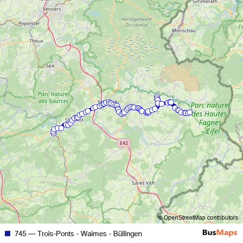 Click here to view the nearest 745 - Trois-Ponts - Waimes - Büllingen bus stop.