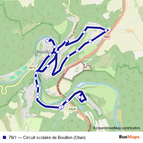 Click here to view the nearest 79/1 - Circuit scolaire de Bouillon (Otan) bus stop.