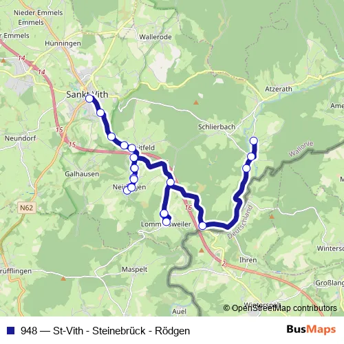 Click here to view the nearest 948 - St-Vith - Steinebrück - Rödgen bus stop.
