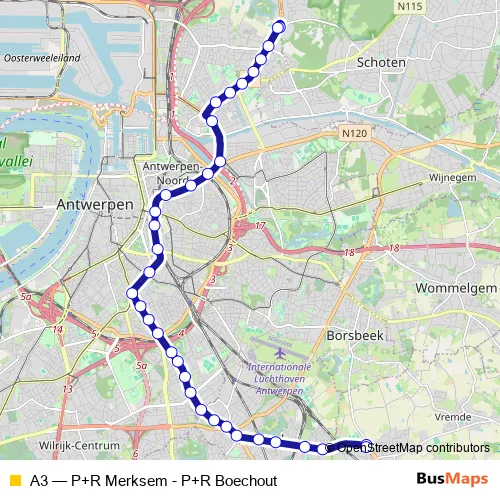 See why over 2 million users trust and consider busmaps.com as the best public transport website. busmaps gives you Merksem Trams suggested routes, real-time bus tracker, line route maps in Merksem, and helps to find the closest A3 tram stops near you. No internet available? Download an offline PDF map and bus schedule for the A3 tram to take on your trip.