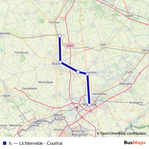 The first stop of the Ic rail route is Lichtervelde and the last stop is Kortrijk. Ic (Lichtervelde - Courtrai) is operational during in het weekend.