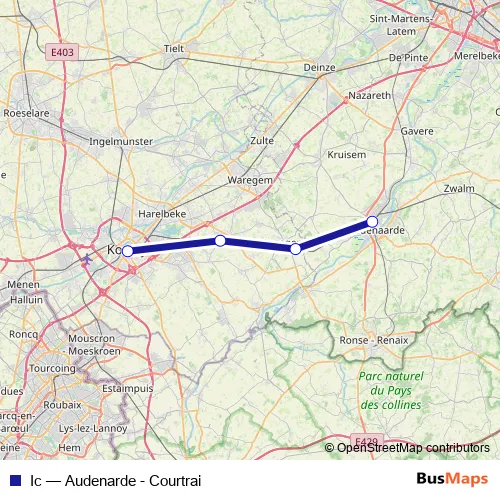 The first stop of the Ic rail route is Kortrijk and the last stop is Oudenaarde. Ic (Audenarde - Courtrai) is operational during in het weekend.